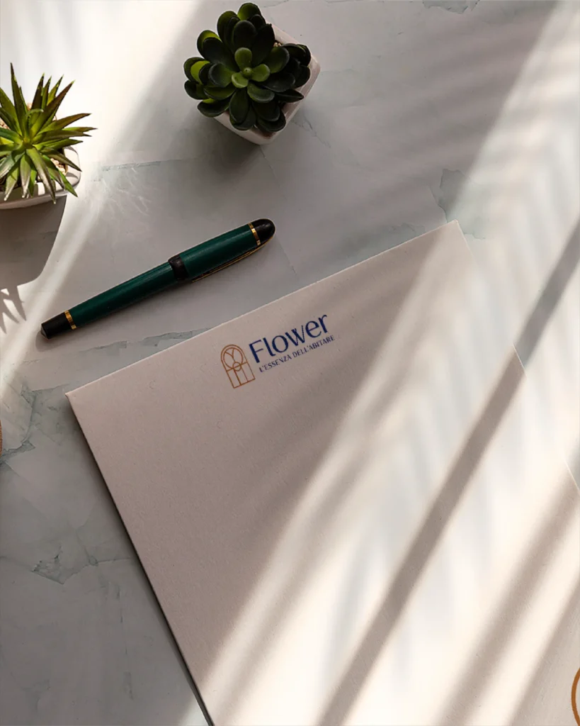 Questi riferimenti sono stati tradotti in un segno essenziale e armonico, costruito attraverso una geometria rigorosa e proporzioni bilanciate, dando vita a un logo riconoscibile, elegante e coerente con l’identità di Flower.